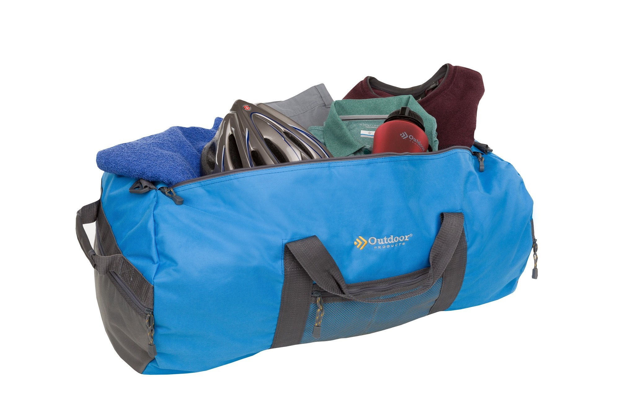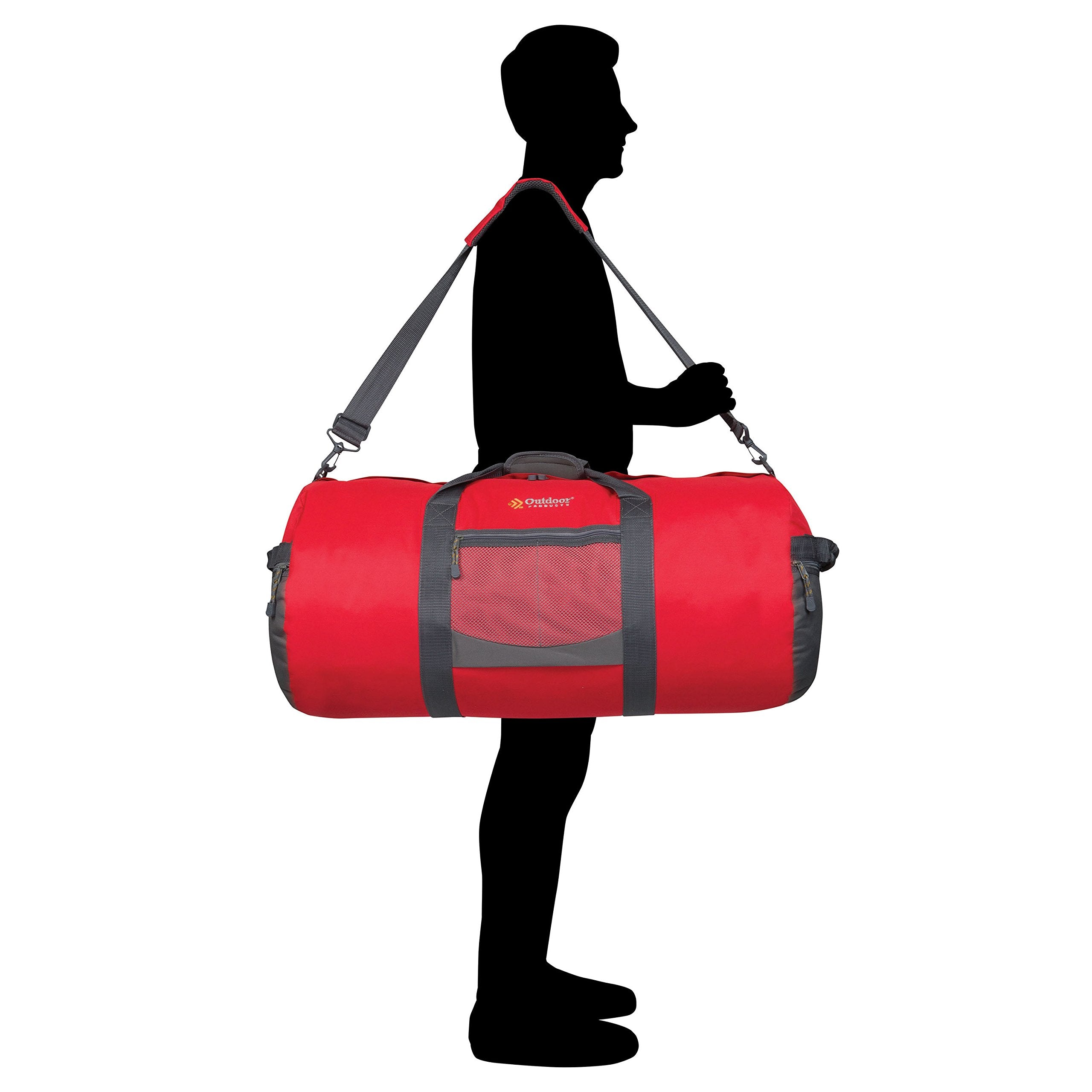Available in four sizes, the sporty Outdoor Products Utility Duffle features a spacious round body that makes it easy to pack loads of gear for weekend adventures, team sports events, gym workouts, car camping, and more.